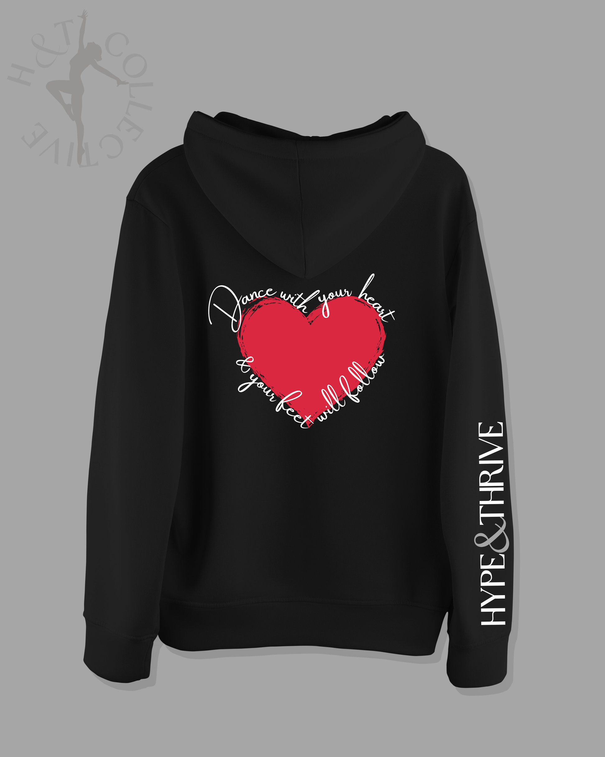 Your new go-to hoodie for comfort and style. Featuring back graphic "Dance with your Heart." This hoodie is made from a soft breathable cotton-blend fabric. With a relaxed fit, front kangaroo pocket and adjustable drawstring hood, it's designed for everyday wear. Whether you're lounging at home, heading to class, competitions or out with friends, this hoodie keeps you warm while looking effortlessly cool.